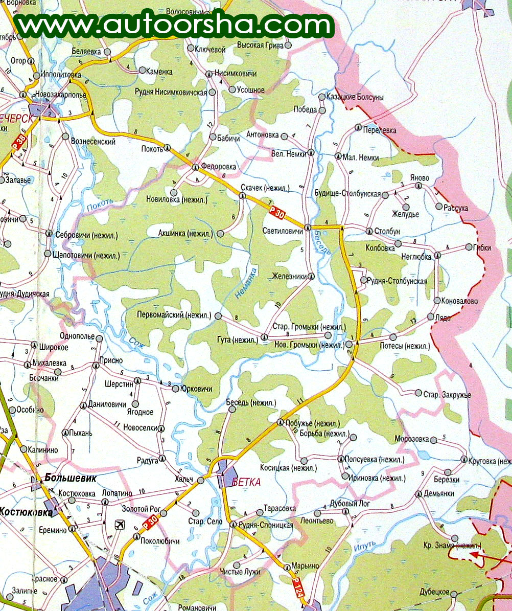 Районный центр - город Ветка с населением 8,5 тыс. чел. Расположен на реке Сож в 22 км на северо-восток от Гомеля.